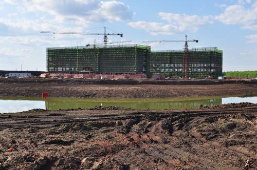 我所高新北區新址園區規劃方案業已在今年三月得到中科院批復,該項目占地45公頃,一期工程建筑面積近10萬平方米,按兩個標段分步實施。目前,一標段四個科研實驗與辦公樓拔地而起,相繼進入主體封頂階段;二標段工程完成招標,施工現場機聲隆隆,此起彼伏。