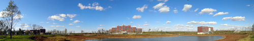 經(jīng)過兩年多的緊張施工建設,一座環(huán)境優(yōu)美,功能齊全的現(xiàn)代化新園區(qū)順利建成并投入使用。新園區(qū)座落在長春市高新北區(qū),占地面積45公頃,劃分為科研創(chuàng)新區(qū)、教育綜合區(qū)、試驗示范區(qū)和成果轉化區(qū)四大功能區(qū)。一期建設工程7.5萬平方米,投資3.5億元,新建單體建筑22個,包括四棟辦公實驗樓、綜合服務樓、研究生公寓和人才周轉公寓等。