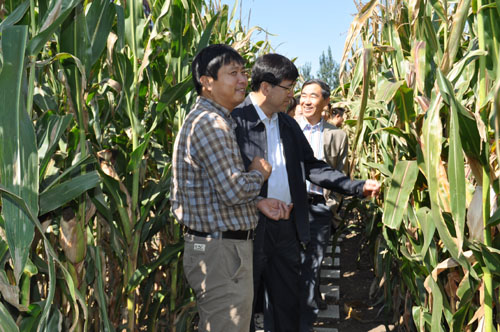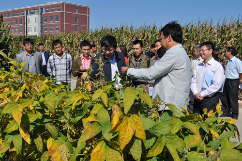 在長(zhǎng)春綜合農(nóng)業(yè)試驗(yàn)站,陰和俊副院長(zhǎng)實(shí)地考察了玉米育種試驗(yàn)田、超高產(chǎn)耐鹽堿東稻4號(hào)水稻新品種示范田、高光效新型種植模式示范田、大豆分子育種種質(zhì)資源圃,關(guān)義新、楊福、劉景雙和馮獻(xiàn)忠研究員分別就試驗(yàn)區(qū)的試驗(yàn)設(shè)置、研究?jī)?nèi)容及取得進(jìn)展做了匯報(bào)。陰和俊副院長(zhǎng)對(duì)我所近年來(lái)取得的一系列成果給予了肯定,并就成果的投入成本、效益提升及應(yīng)用推廣情況等問(wèn)題進(jìn)行了細(xì)致的了解。