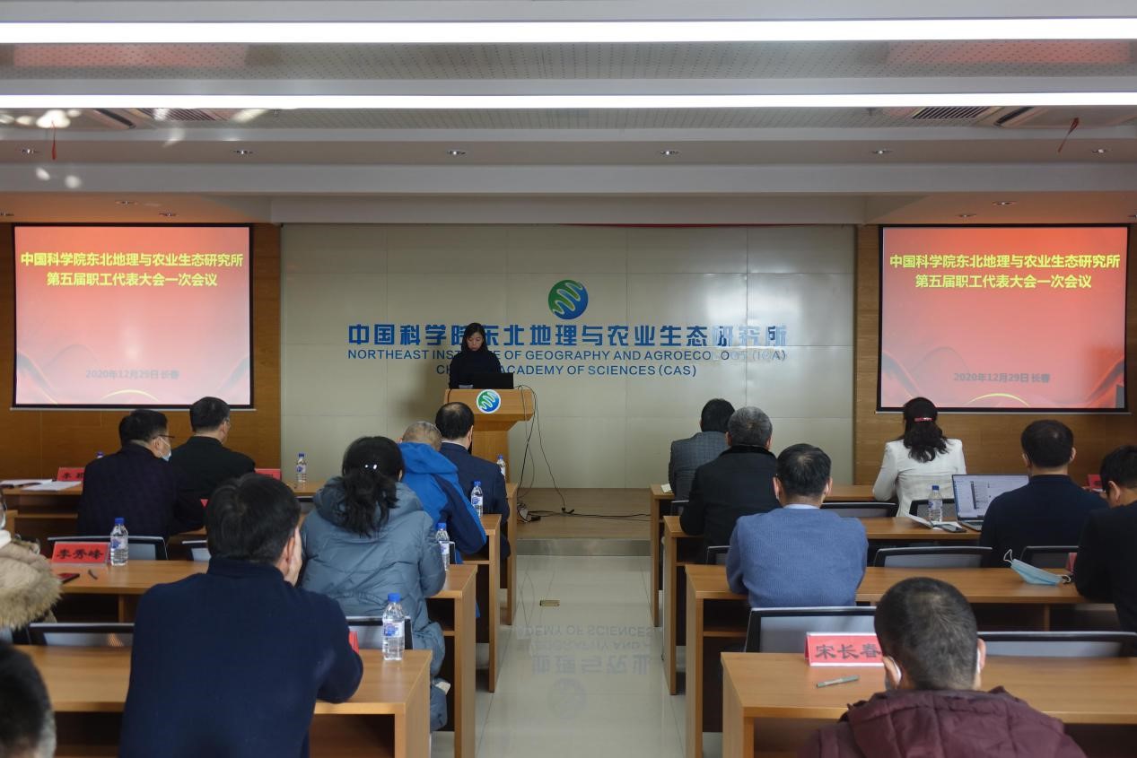 12月29日上午,中國科學院東北地理與農業生態研究所第五屆職工代表大會一次會議在綜合樓四樓報告廳召開。全所34名職工代表參加會議。長春分院分黨組副書記、副院長馬七軍(正局級),東北地理所黨委書記、副所長蘇陽,黨委副書記、紀委書記王曉慧,副所長武海濤出席會議。
