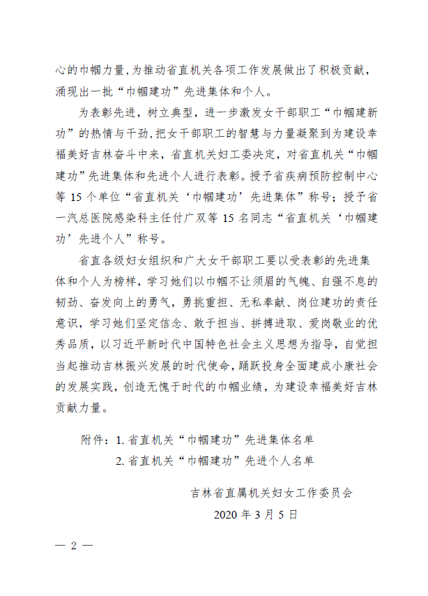 “巾幗建功”獎項的設立意在表彰在各自行業、各自崗位取得了突出成績,特別是在抗擊新冠肺炎工作中,沖鋒在前、無私奉獻,堅守在抗“疫”一線,成為疫情防控中溫暖人心的巾幗力量,為推動省直機關各項工作發展做出了積極貢獻的、以女性為主的先進集體、崗位和個人。疫情發生以來,長春分院系統廣大女職工堅守崗位,齊心協力抗擊疫情同時有序推進復工復產,以實際行動在疫情防控和推動研究所科技創新發展中發揮半邊天力量。
