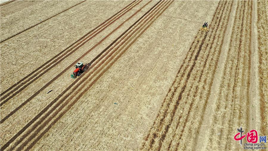 5月11日,探訪中國科學(xué)院“黑土糧倉”科技會(huì)戰(zhàn)“梨樹模式”示范區(qū),“梨樹模式”研發(fā)的專用秸桿覆蓋條耕機(jī)在萬畝示范區(qū)現(xiàn)場作業(yè)。中科院科技攝影聯(lián)盟供圖