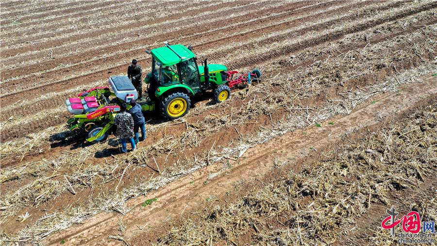 5月11日,探訪中國科學(xué)院“黑土糧倉”科技會(huì)戰(zhàn)“梨樹模式”、示范區(qū),“梨樹模式”研發(fā)的免耕播種機(jī)在萬畝示范區(qū)現(xiàn)場作業(yè)。中科院科技攝影聯(lián)盟供圖