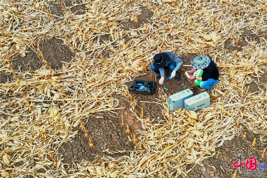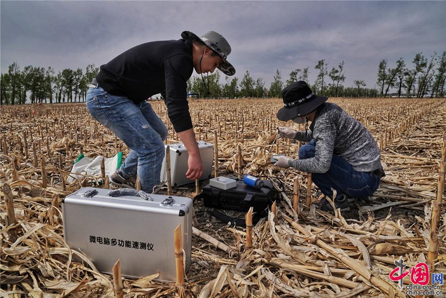 5月11日,探訪中國科學(xué)院“黑土糧倉”科技會(huì)戰(zhàn)“梨樹模式”示范區(qū)。圖為科研人員采集樣本和數(shù)據(jù)。中科院科技攝影聯(lián)盟供圖