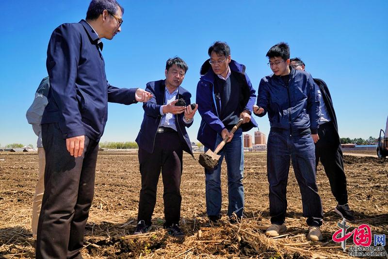 5月13日,探訪中國科學院“黑土糧倉”科技會戰“龍江模式”示范區。圖為中國科學院東北地理與農業生態研究所研究員韓曉增(左三)介紹黑土地保護情況。中科院科技攝影聯盟供圖