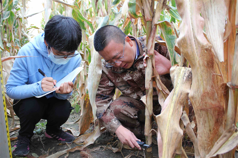 在中科院“黑土糧倉(cāng)”科技會(huì)戰(zhàn)長(zhǎng)春示范區(qū)農(nóng)安示范基地-農(nóng)安縣合隆鎮(zhèn)陳家店村,萬(wàn)畝金黃玉米即將豐收。皮膚黝黑,一身迷彩服,手拿測(cè)尺的陳學(xué)文正和同事、學(xué)生們測(cè)量矮桿密植玉米品種的穗位高、株高、莖粗等指標(biāo),作為秸稈覆蓋還田少免耕技術(shù)體系的負(fù)責(zé)人,他告訴記者,由于農(nóng)業(yè)科研工作的特殊性,他們?cè)缫蚜?xí)慣了堅(jiān)守?!安蓸印⒉煌鞣绞胶妥魑锲贩N的測(cè)產(chǎn)、不同技術(shù)模式的整地……要做的事情太多了,正值秋收,黑土保育工作不能停?!标悓W(xué)文說(shuō)。