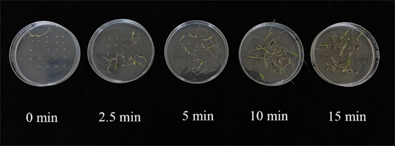 圖6 不同煙熏時(shí)間對(duì)狗尾草種子萌發(fā)的影響(作者拍攝)