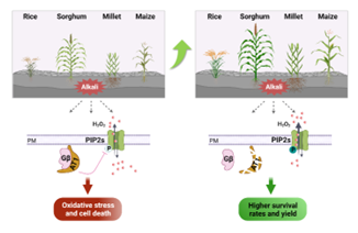 中國科學院遺傳與發育生物學研究所謝旗團隊與中國農業大學于菲菲團隊、華中農業大學歐陽亦聃團隊聯合中國科學院生物物理研究所、中國科學院東北地理與農業生態研究所、寧夏大學、揚州大學、北京大學現代農業研究院、山東大學和先正達集團中國十家單位合作,以耐鹽堿作物高粱為材料,首次發現主效耐堿基因AT1及其作用機制。大田實驗證明,該基因可顯著提升高粱、水稻、小麥、玉米和谷子等作物在鹽堿地的產量,在改良鹽堿地綜合利用中具有重大應用前景。相關研究于3月24日發表于《科學》和《國家科學評論》雜志上。