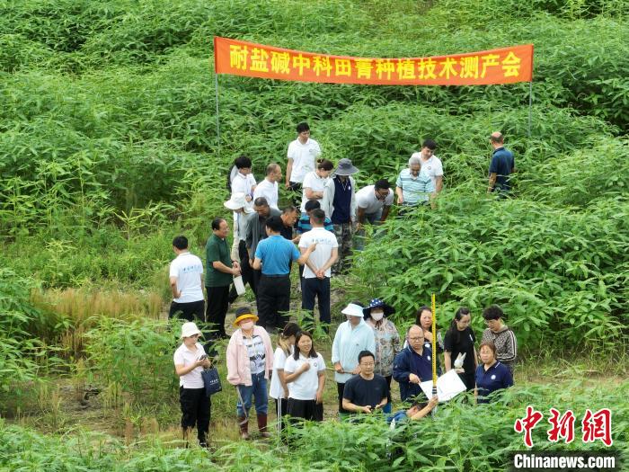 此次測產標志著由中國科學院遺傳與發育生物學研究所曹曉風院士團隊選育的耐鹽堿、肥飼兼用型中科田菁品系在貧瘠的重度鹽堿地也能高產。
