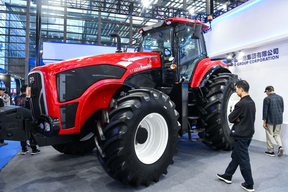 2023年11月,觀眾在第二十五屆高交會上了解東方紅輪式拖拉機。新華社記者 梁旭 攝
