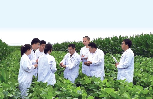 吉林農業大學高強教授(右四)在梨樹科技小院為學生進行田間指導。