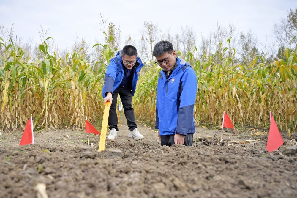 9月29日,研究人員在位于佳木斯市樺南縣的曙光農(nóng)場查看田塊剖面。新華社記者石楓 攝
