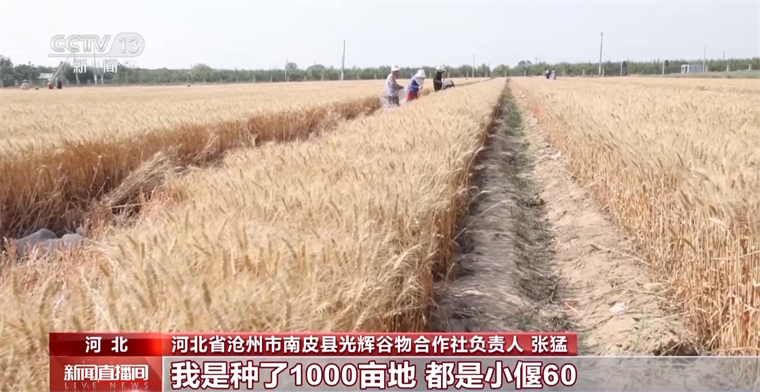 河北省滄州市南皮縣光輝谷物合作社負(fù)責(zé)人 張猛:我種了1000畝地,都是“小偃60”,這個品種抗鹽堿、抗旱,抗倒伏,產(chǎn)量挺高,畝產(chǎn)達到1000多斤沒問題。