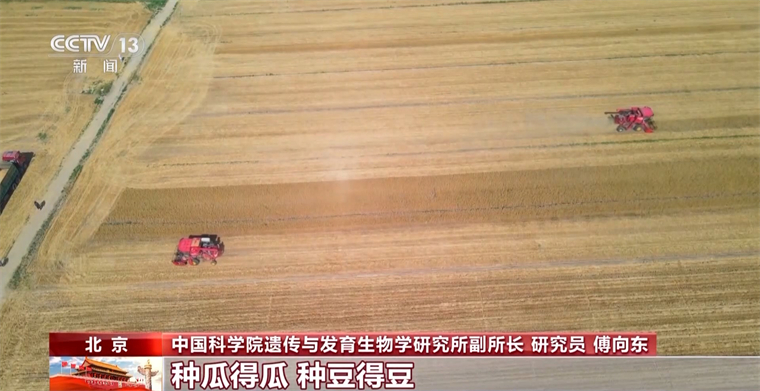 中國科學(xué)院遺傳與發(fā)育生物學(xué)研究所副所長 研究員 傅向東:種瓜得瓜,種豆得豆,有好的品種,才有好的收獲。我們的耕地只有18億畝,我們?nèi)丝谟?4億,人多地少,這是我們的國情。我們要在有限土地上產(chǎn)出更高的糧,一直是我們育種的一個目標(biāo),但不是唯一的目標(biāo)。隨著我們生活水平條件好了以后,我們不但要吃得飽,而且吃得好,所以我們的育種工作也需要不斷推進。