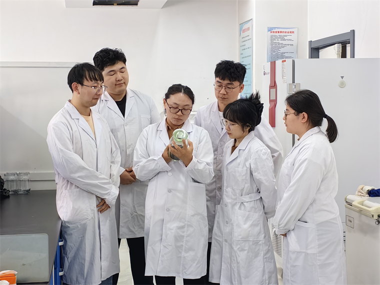 鄒文秀(左三)和團隊成員探討實驗情況