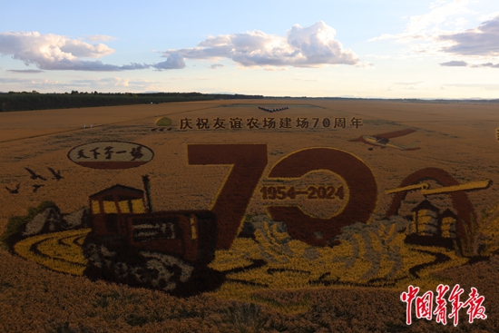 友誼農場“萬畝大地號”上的稻田畫。中青報·中青網見習記者?李思攝