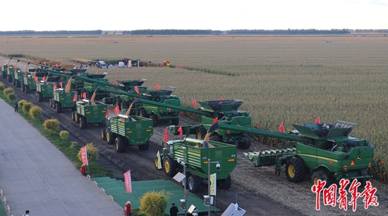 友誼農場“萬畝大地號”上的秋收場景。中青報·中青網見習記者?李思攝