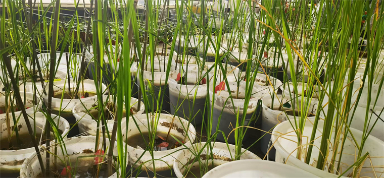 “我們人為設置了不同程度鹽堿度的土壤條件,探索茭白的耐鹽堿閾值。你看這盆的鹽堿度就太高了,苗沒活;還要找到需肥規律,調節氮磷鉀不同比例和水平,看看哪種更高效。”姜文明說。