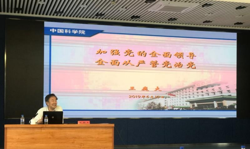 王庭大緊緊圍繞堅持黨的領導加強黨的建設這一主題,就馬克思主義的黨,黨的全面領導,全面從嚴管黨治黨三個方面進行了系統闡述。講解了中國共產黨98年長期奮斗形成的把馬克思主義的普遍真理與中國革命實踐相結合,始終代表中國人民的利益,堅持與時俱進帶領中國和中國人民站起來、富起來、強起來的歷史進程;系統闡述了中國共產黨為中國人民謀幸福,為中華民族謀復興的初心和使命;對習近平新時代中國特色社會主義思想和黨的十九大精神進行了全面解讀。報告中,王庭大對“不忘初心牢記使命”主題教育進行了深入解讀。研究所廣大黨員和職工、研究生紛紛反映,王庭大院長的報告非常精彩,深入淺出,站位高,主題鮮明,解讀透,生動形象,我們收獲很大。