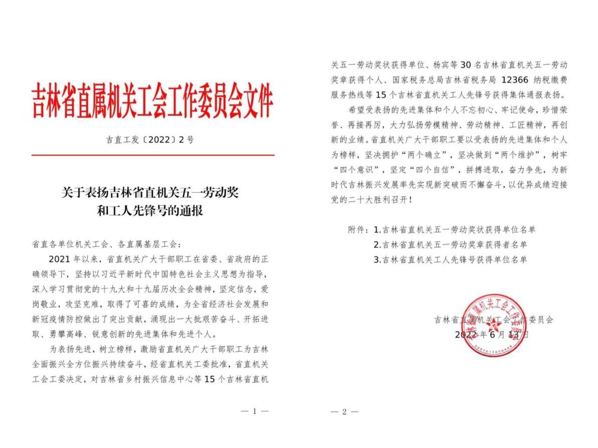 為表揚先進,樹立榜樣,激勵省直機關廣大干部職工為吉林全面振興全方位振興持續奮斗,經省直機關工委批準,省直機關工會工委決定,對15個吉林省直機關五一勞動獎狀獲得單位、30名吉林省直機關五一勞動獎章獲得個人、15個吉林省直機關工人先鋒號獲得集體通報表揚。東北地理所獲得吉林省直機關五一勞動獎狀。
