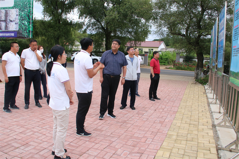 在遼河源基地,調研組詳細了解遼河源基地的發展歷程和工作成果。遼河源基地負責人李向楠介紹了遼河源水源地生態農業工程實驗室服務“黑土會戰”,助力千億斤糧食工程的示范內容與示范效應,冷建田高級工程師介紹了丘陵區水土生態修復與高效生態農業發展模式、以矮稈密植作物為主體的糧豆輪作模式及玉木耳生態高值高效特色生產模式。