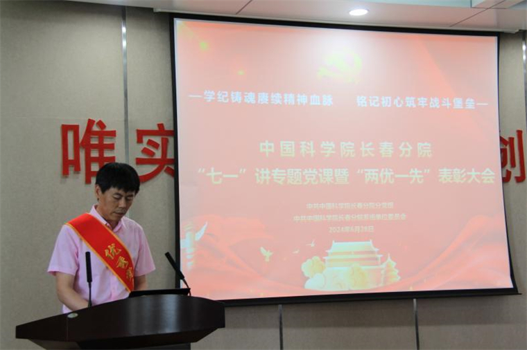 為深入學(xué)習(xí)貫徹習(xí)近平總書記關(guān)于黨紀(jì)學(xué)習(xí)教育的重要講話和重要指示精神,熱烈慶祝中國共產(chǎn)黨成立103周年,6月28日上午,中國科學(xué)院長春分院隆重舉辦2024年度“七一”講專題黨課暨“兩優(yōu)一先”表彰大會。會上,中共中國科學(xué)院長春分院分黨組、中共中國科學(xué)院長春分院系統(tǒng)單位委員會對在長春分院系統(tǒng)單位過去一年黨建工作中,表現(xiàn)突出的集體和個人給予表彰。