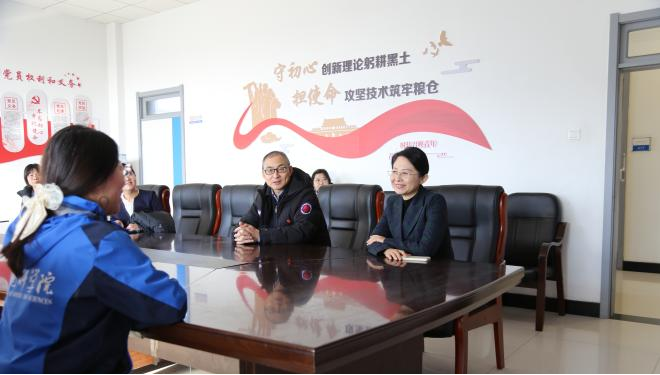 在農(nóng)業(yè)樓,梁愛珍研究員重點介紹了“黑土糧倉”科技會戰(zhàn)長春示范區(qū)在保護性耕作與梨樹模式2.0構(gòu)建方面開展的科技攻關(guān)、成果轉(zhuǎn)化、示范推廣等工作匯報。在種質(zhì)資源樓,馮獻忠研究員詳細介紹了東北亞種質(zhì)資源研究中心的運行情況及大豆固相育種芯片研發(fā)方面的主要工作;耿宇副研究員詳細匯報了大豆分子設(shè)計育種體系、高通量作物表型組平臺等工作進展情況。在科學(xué)家精神教育基地,遲婷一行重點了解了研究所歷史沿革、學(xué)科布局、重大任務(wù)、科技平臺建設(shè)、科技成果轉(zhuǎn)化及人才隊伍建設(shè)等情況。