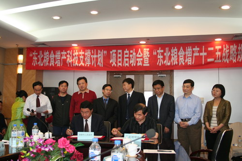 5月11日,在中科院“東北糧食增產科技支撐計劃”項目啟動會上,我所何興元所長與吉林省德惠市林英昌副市長簽署了《中國科學院東北地理與農業生態研究所與吉林省德惠市人民政府科技合作協議》,院生物局張知彬局長、長春分院王利祥院長、吉林省農委陳巳副主任等有關領導參加了簽約儀式。