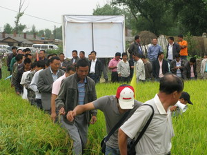 早在今年8月28日,為了加大新品種的認(rèn)知度和惠農(nóng)推廣,讓稻農(nóng)實(shí)地了解“東稻4號(hào)”的生長(zhǎng)特性與田間表現(xiàn),楊福研究員在白城市吉林油田洮河農(nóng)場(chǎng)組織召開(kāi)了“東稻4號(hào)”水稻推廣現(xiàn)場(chǎng)會(huì)。來(lái)自中國(guó)科學(xué)院長(zhǎng)春分院、吉林省種子管理總站、白城市種子管理站、白城市農(nóng)業(yè)科學(xué)院和吉林西部各市縣水稻辦的專家領(lǐng)導(dǎo),以及全省各地的經(jīng)銷商、農(nóng)民代表共計(jì)150多人參加了現(xiàn)場(chǎng)會(huì),與會(huì)人員反響強(qiáng)烈,一致認(rèn)為“東稻4號(hào)”長(zhǎng)勢(shì)喜人、豐產(chǎn)性好,有望取代目前吉林西部推廣面積最大的同熟期水稻品種“長(zhǎng)白9號(hào)”。中國(guó)科學(xué)院農(nóng)業(yè)項(xiàng)目辦原主任王大生等一行9月4日親臨現(xiàn)場(chǎng)考察時(shí)對(duì)“東稻4號(hào)”良好長(zhǎng)勢(shì)與產(chǎn)量潛力也給予了充分肯定。指出,一定要積極組織申報(bào)國(guó)家農(nóng)業(yè)科技成果轉(zhuǎn)化基金項(xiàng)目支持,加大“東稻4號(hào)”推廣力度,把優(yōu)秀的農(nóng)業(yè)科技成果迅速轉(zhuǎn)化為生產(chǎn)力,為農(nóng)民造福。