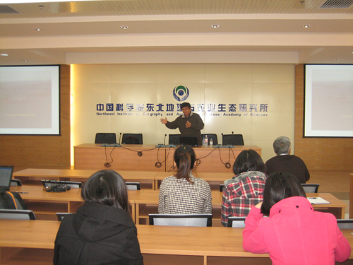 11月1日,在濕地生態與環境重點實驗室主任呂憲國研究員的主持下,胥教授作了題為“Challenges and Opportunities for hydrologists in wetland research”的精彩報告。結合近期他在美國開展的濕地水文研究案例,重點介紹了森林采伐濕地水文管理、濱河濕地水質凈化機理與功能、河口濕地萎縮與泥沙沉積、湖泊濕地水質遙感解譯、流域水環境非點源污染遷移歸宿與BMPs等8個典型案例研究的目的意義、方法與技術手段和重要結論。最后,胥教授與我所科研人員和研究生就濕地水文領域熱點問題進行了交流與討論,希望將來可以進一步加強與我所在濕地水文領域的合作研究。