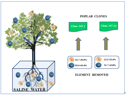 除了針對常規(guī)污染物的凈化以外,水環(huán)境污染與防治學(xué)科組祝惠副研究員與美國農(nóng)業(yè)部Gary Banuelos教授合作,篩選了兩種耐鹽能力較強的的克隆楊樹品種,并通過實驗證明他們對含鹽廢水中高濃度硒(Se)、硼(B)等元素具有較強的耐受和凈化能力,為同時含有鹽分和高濃度Se、B等元素的污染水體凈化提供了技術(shù)支撐(Zhu and Banuelos, Journal of Hazardous Materials, 2017)。