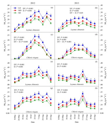 土壤呼吸是草地土壤碳輸出的重要途徑,其變化直接影響土壤肥力和大氣CO2含量,并可能進一步影響糧食安全和全球氣候。草地植被是決定土壤呼吸的一個重要因素。受異質性的環境條件驅動,草地植被群落存在空間差異,這種空間差異可能影響區域尺度土壤呼吸碳釋放的評估。其次,在不同放牧干擾下,草地植被群落將表現不同的低矮稀疏退化程度。植被群落退化狀態的差異將進一步限制區域土壤呼吸和碳釋放的精準評估。因此,針對不同植被群落,揭示放牧驅動的植被退化對土壤呼吸的影響,有助于準確評估區域土壤碳動態,并改善草地管理、提高草地持續力。