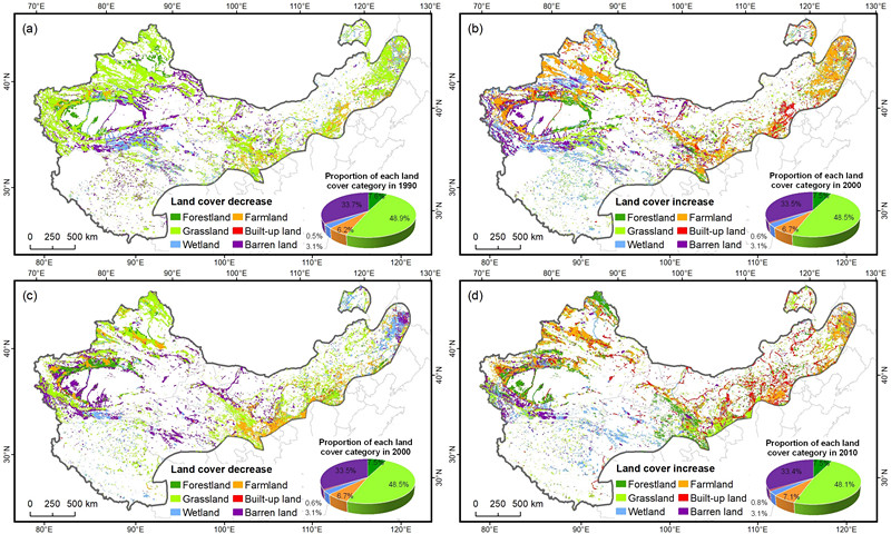 圖1990-2010年中國干旱-半干旱區(qū)土地覆被變化情況