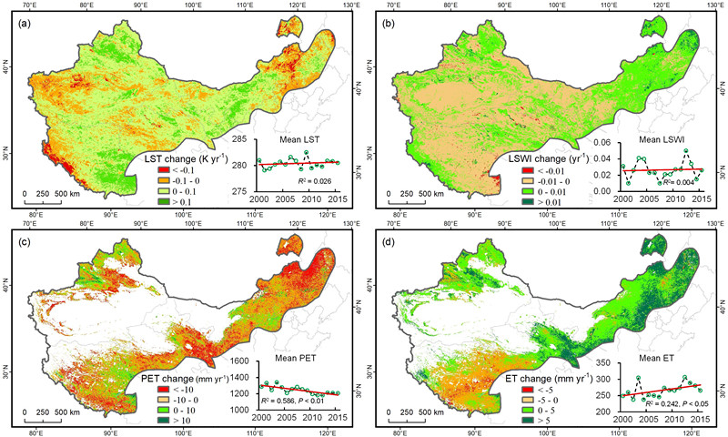 圖 中國干旱-半干旱區(qū)主要環(huán)境參量年際變化趨勢