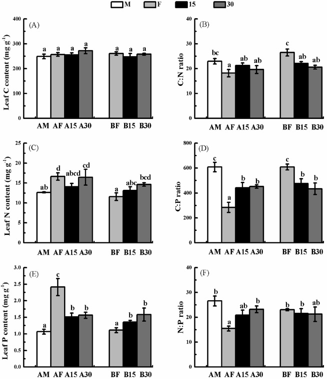 圖2.干濕交替對(duì)苔草草 丘生長(zhǎng)和營(yíng)養(yǎng)元素的影響
