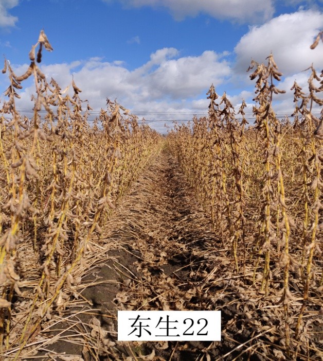 “東生22 ”為高蛋白、高產(chǎn)量品種。 “東生22 ”三年平均品質(zhì)分析結(jié)果蛋白質(zhì)含量43.80 %,脂肪含量 19.55 %;生產(chǎn)試驗(yàn)平均公頃產(chǎn)量 2605.2公斤,較對(duì)照品種北豆40增產(chǎn)7.9%。中抗灰斑病。“東生22 ”為亞有限結(jié)莢習(xí)性。株高85厘米左右,無分枝,白花,長(zhǎng)葉,灰色茸毛,莢彎鐮形,成熟時(shí)呈灰褐色。籽粒圓形,種皮黃色,種臍黃色,有光澤,百粒重20.0克左右。適宜在黑龍江省第三積溫帶西部區(qū)≥10℃活動(dòng)積溫2350℃區(qū)域種植。