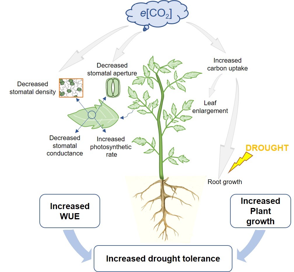 中科院東北地理所李向楠研究員與丹麥哥本哈根大學劉福來教授團隊在作物響應大氣CO2濃度升高和干旱脅迫方面取得了一系列研究進展,近日受邀在Current Opinion in Plant Biology(IF=8.356)發表了題為“ABA-mediated modulation of elevated CO2 on stomatal response to drought”的研究綜述(2020, 56, 174-180),系統總結了大氣CO2濃度升高與干旱脅迫的互作效應,提出高CO2濃度下作物水分利用效率的提高有助于作物的干旱適應。此外,高CO2濃度下作物碳同化效率的提高也對作物根系發育和產量形成具有積極作用,而CO2濃度升高導致的碳同化增加也間接影響了作物對氮素的吸收,該過程與作物所處的環境條件和水肥狀況存在直接關系。未來需進一步明確大氣CO2濃度升高調控氣孔響應多種復合非生物脅迫的生理過程,從而為在未來氣候條件下提高作物水肥利用效率提供依據。