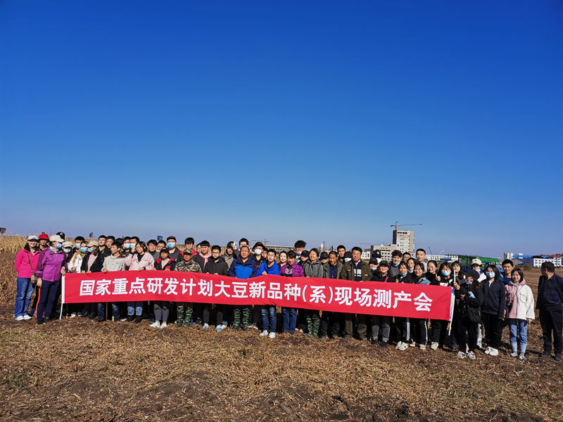 10月7日,東北地理所寒區大豆育種學科組組織對在國家重點研發計劃項目和中科院重點部署項目等項目資助下選育的大豆新品系大面積示范田進行專家測產?,F場會在黑龍江省海倫市前進鎮自新村“東生系列”大豆示范田進行。