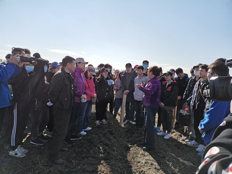 測產之前,李艷華為前來實習的黑龍江大學學生現場講解了測產原理和意義。