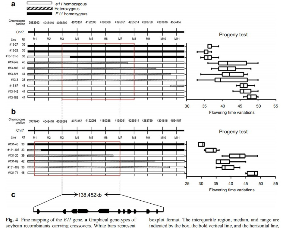 Feifei Wang, Haiyang Nan, Liyu Chenet al., A new dominant locus, E11, controls early flowering time. Molecular breeding, 2019, 39:70