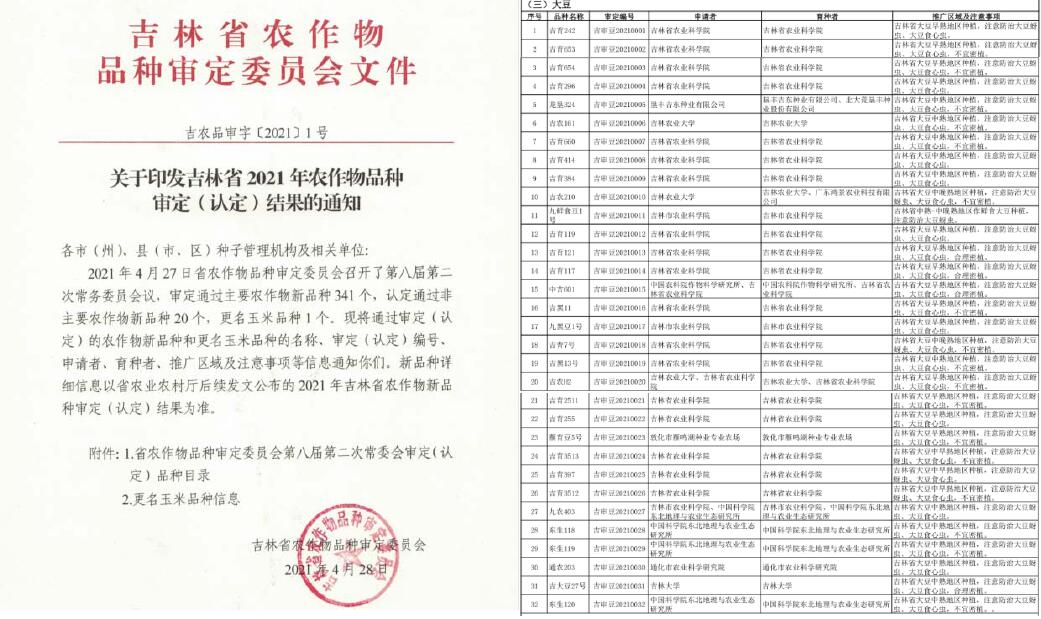 高油、高產大豆新品種“東生118、東生119、東生120和九農403”通過審定