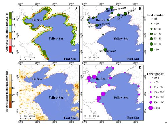 東亞-澳大利西亞水鳥遷徙廊道是全球最大的水鳥遷徙路徑之一,其中環黃渤海濕地是最為重要的棲息生境,對于遷徙水鳥的保護具有重要的作用。環黃渤海地區,地跨朝鮮半島西海岸和中國江蘇啟東市以北長度超過1萬公里的海岸線,是東北亞地區經濟快速發展的重點區域之一,因此區域濕地和遷徙水鳥受人為脅迫干擾嚴重。準確理解濕地分布范圍、變化趨勢和主要驅動因素對于保護濕地生態系統和生物多樣性等具有重要的科學意義和社會價值,是學術界重點關注的熱點話題。然而,環黃渤海地區長時間序列濕地生境及其人為脅迫的跨境對比分析方面仍存在明顯的不足。