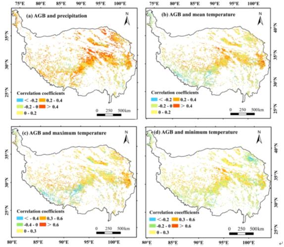 圖2青藏高原沼澤濕地植被地上生物量與氣候因子相互關(guān)系