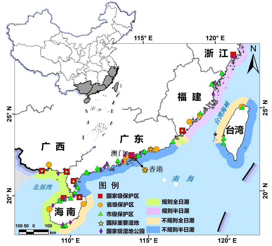 紅樹林是生長在熱帶、亞熱帶海岸潮間帶或河流入海口的濕地木本植物群落,是全球生產(chǎn)力最高的生態(tài)系統(tǒng)之一。由于其獨特的海陸過渡特征,紅樹林在維持濱海生態(tài)穩(wěn)定、促進海陸能量循環(huán)中起著重要作用。同時,紅樹林沉積過程中能夠封存大量有機碳,在減緩全球變暖等氣候變化中扮演著重要角色。2015年9月,聯(lián)合國可持續(xù)發(fā)展峰會正式通過了《2030年可持續(xù)發(fā)展議程》(Sustainable Development Goals,SDGs)。該議程涵蓋了17個全球可持續(xù)發(fā)展目標(biāo)(SDGs)和169個具體目標(biāo)(Targets),是包括社會、經(jīng)濟、環(huán)境三大方面的綜合目標(biāo)體系。紅樹林的保護、管理和恢復(fù)與多項聯(lián)合國可持續(xù)發(fā)展目標(biāo)(Sustainable Development Goals,SDGs)密切相關(guān)。然而,迄今還沒有面向SDGs的中國紅樹林時空變化分析。