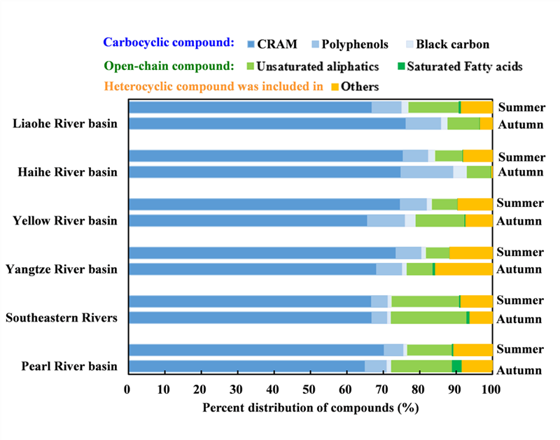 圖1 中國(guó)不同流域河口水體中DOM分子組成比例分析