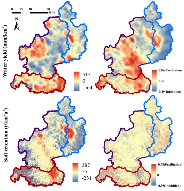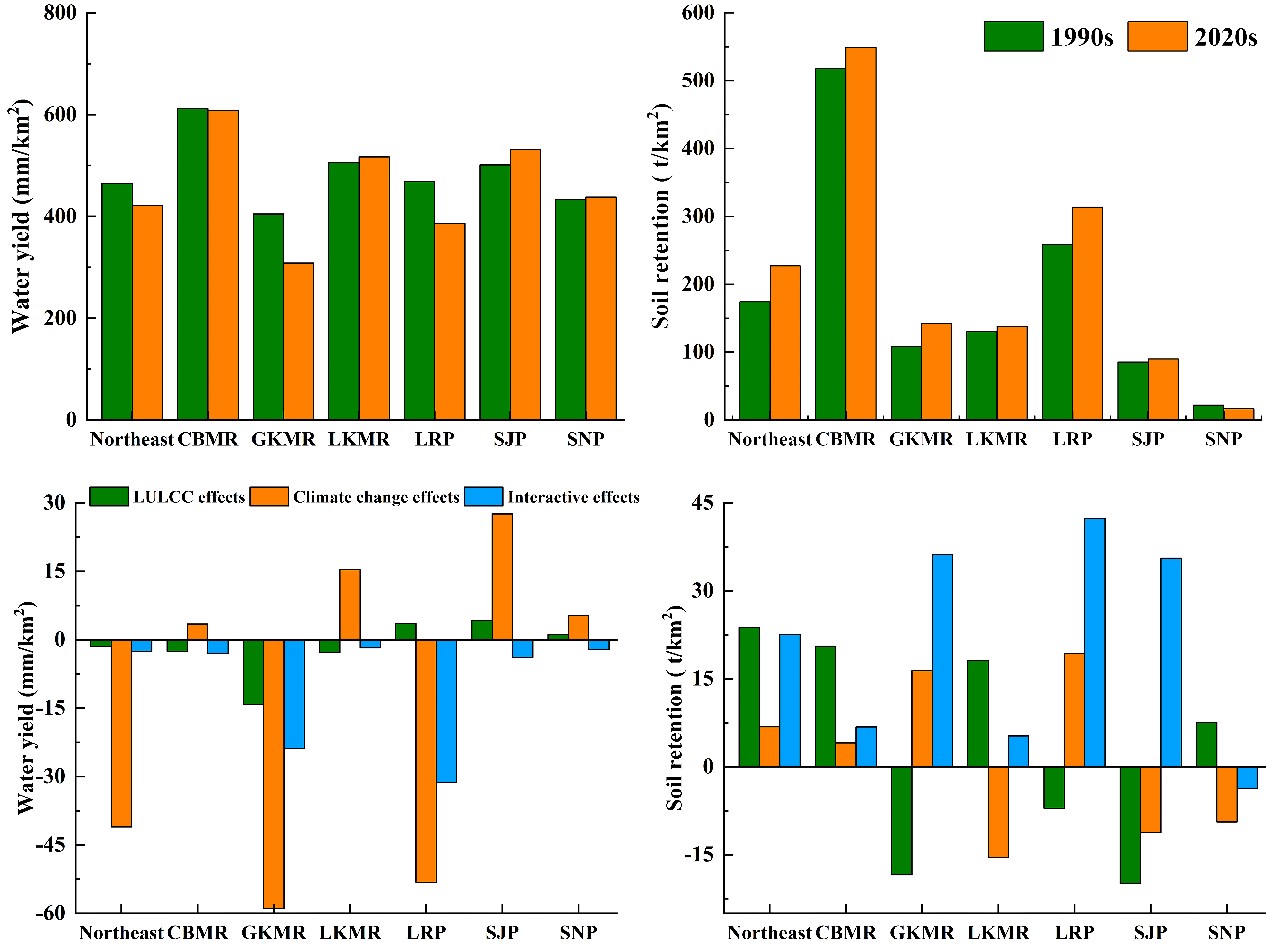 圖1. 東北地區(qū)產(chǎn)水量和土壤保持量變化及其影響機(jī)制
