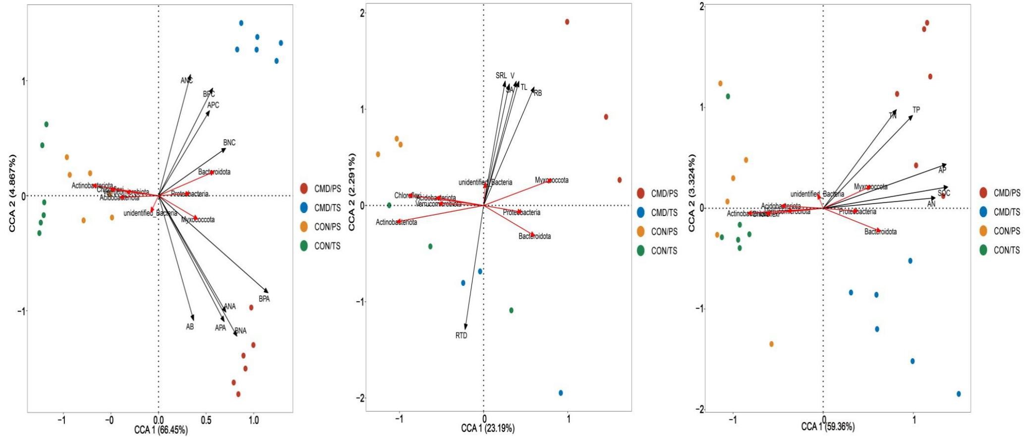 圖2冗余分析顯示細(xì)菌門(mén)水平群落組成與燕麥生物量,養(yǎng)分吸收和歸還的相關(guān)關(guān)系