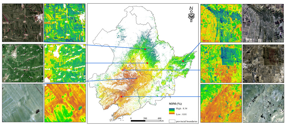土壤有機質(SOM)含量是衡量土壤肥力高低的重要指標之一,尤其是對土地肥沃的東北黑土區。此外,SOM中儲存的碳也是全球陸地碳循環的重要組成部分,對全球碳收支平衡具有重要意義。然而高精度SOM含量空間分布圖的缺失使得土壤質量評價與區域碳循環評估的精度也受到影響。準確快速地對區域耕地SOM含量制圖對區域耕地高質量管理與農業可持續發展具有重要意義。