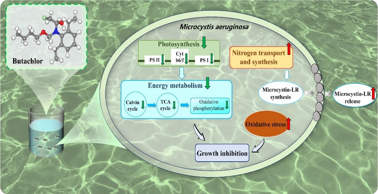 丁草胺作為酰胺類除草劑廣泛應(yīng)用于稻田防除禾本科雜草及部分闊葉雜草,并會(huì)隨農(nóng)田退水進(jìn)入地表水,在地表水環(huán)境中已被頻繁檢出。銅綠微囊藻作為藍(lán)藻水華的優(yōu)勢(shì)藻種,其產(chǎn)生的微囊藻毒素嚴(yán)重威脅水生生物和人體健康。丁草胺會(huì)對(duì)水環(huán)境中多種藻類造成不同程度的影響,然而目前尚缺乏其對(duì)銅綠微囊藻生長(zhǎng)和產(chǎn)毒作用機(jī)制的深入研究。為此,東北地理所科研人員對(duì)銅綠微囊藻進(jìn)行了丁草胺暴露試驗(yàn),從生理和分子生物學(xué)角度解析丁草胺對(duì)銅綠微囊藻生長(zhǎng)和產(chǎn)毒的作用機(jī)制。