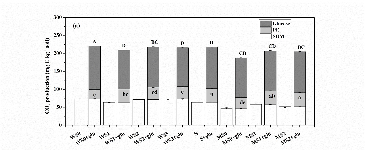 圖1 不同小麥和玉米輪作系統(tǒng)中土壤有機碳礦化、激發(fā)效應(PE)和葡萄糖分解